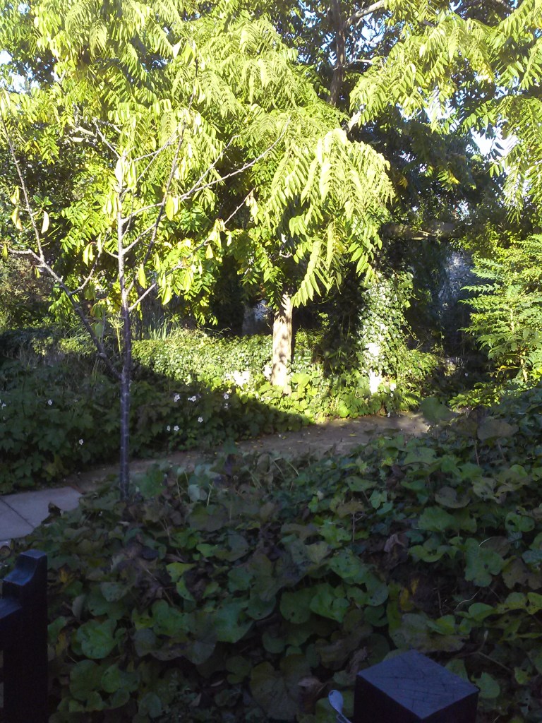 O jardim e o gramado eram originalmente terras comuns onde havia um abastecimento de água da vila, agora marcado bem de perto da entrada sul dos jardins.