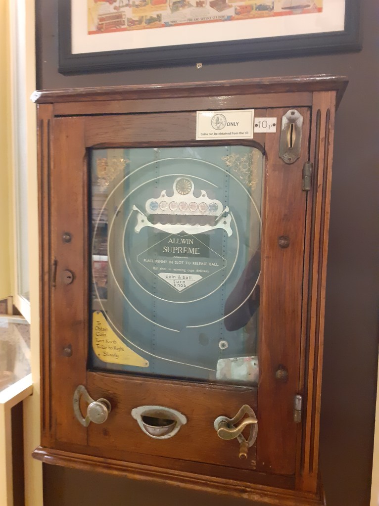 Existem máquinas de brinquedos para as crianças usarem bem antigas também.