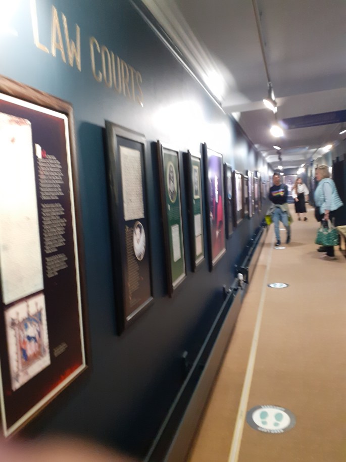 Os belos portões de aço inoxidável cobrem o arco que liga o salão medieval do século XIII aos tribunais do século XX. O projeto de Antony Robinson comemora o casamento de Charles, Príncipe de Gales, e Lady Diana Spencer em julho de 1981. Esses portões são exemplo de um trabalho inovador de forja do século XX.