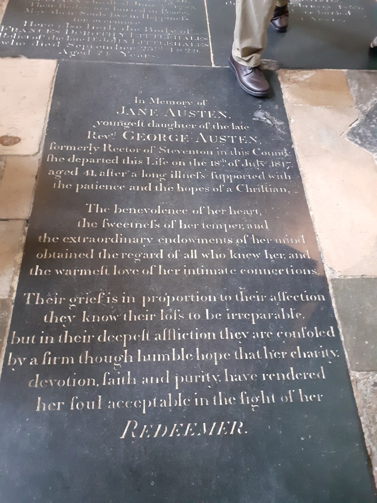 As catedrais da Inglaterra, pelo menos as maiores, possuem sepulturas nos chãos, lá pode se visitar o túmulo de Jane Austen, a escritora inglesa do século XIX, autora de livros como Orgulho e Preconceito, Persuasão, dentre tantas outras obras literárias.