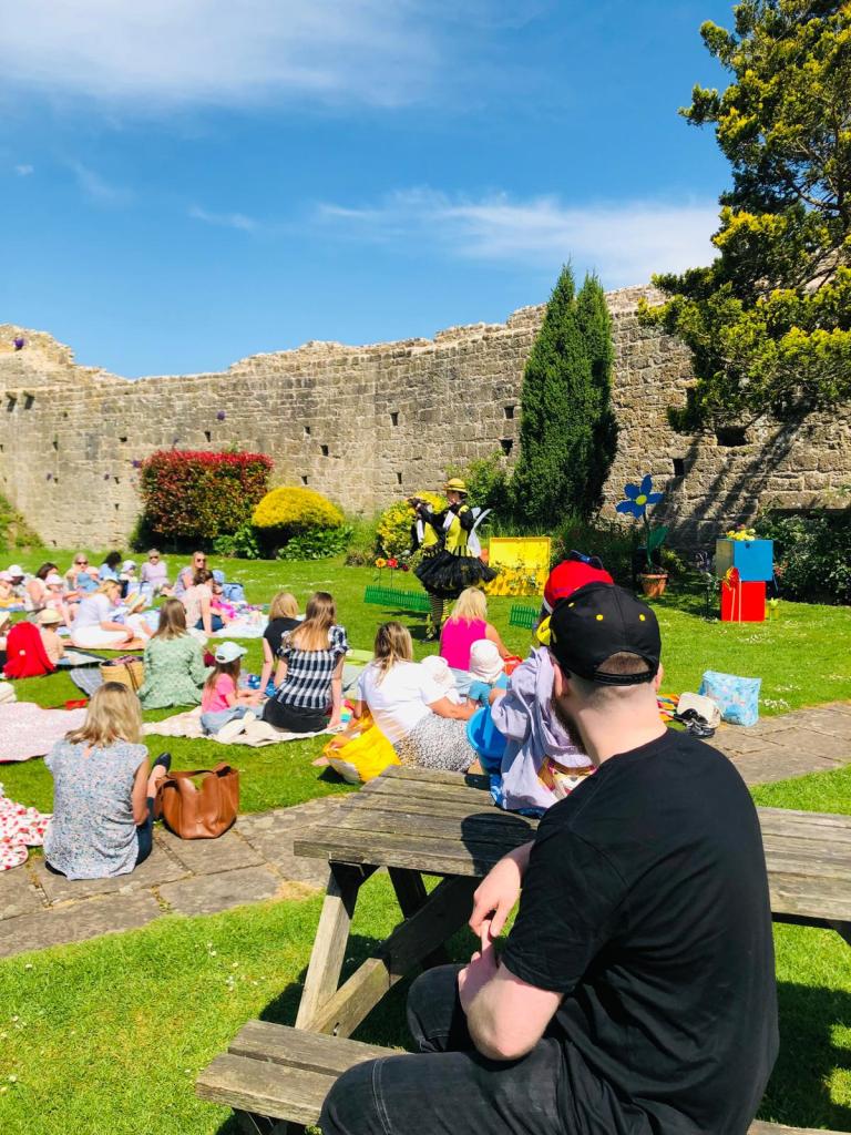 Ah, o castelo é gratuito, e havia atores no local entretendo as crianças em plena segunda-feira, fazendo a interpretação de duas abelhas atrapalhadas com enfoque na conscientização do plantil de flores e árvores e o contato da natureza.