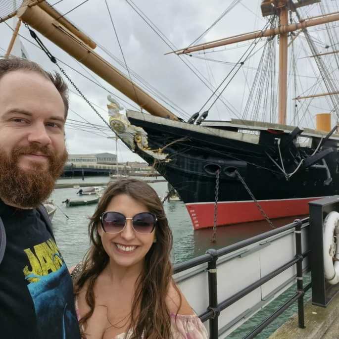 Certamente o navio mais bonito ancorado em Porstmouth.