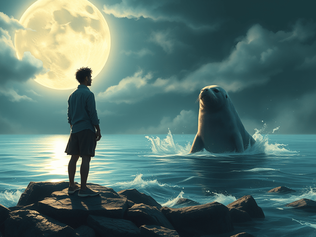 Em seu íntimo, dentro da pele humana, sua natureza selvagem clama para ser ouvida. O pescador se recusa a devolver-lhe a pele e ela, por sua vez, implora por isso.